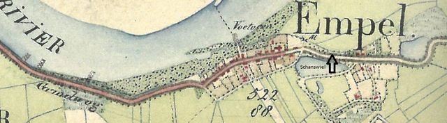 Potentiële breslocatie nabij de Schanswiel (Kaart Top.Dienst 1900)